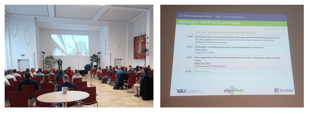 Am 04.10/05.10.2022 präsentierte Dr. Stefan Sebök, Geschäftsführer der AlgenProjekt Meeresalgenland UG, das Thema Makroalgen beim 13.Bundesalgenstammtisch in Frankfurt (a.M.). Herr Dr. Sebök sprach über die vielfältigen Einsatzmöglichkeiten von Makroalgen, aber auch darüber, in welchen Bereichen dringender Handlungsbedarf und wo ökologische und ökonomische Grenzen bestehen. In großer und kleiner Runde wurden Fragen diskutiert wie z. B.: Was können Makroalgen leisten? Welche Chancen bieten Makroalgen der deutschen Wirtschaft? Welche Grenzen hat die Makroalgenproduktion in Deutschland?